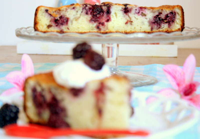 Cam asa s-a intamplat - am amestecat intr-un bol urmatoarele: 3 cesti de faina, 1 ceasca de ulei, 1 si 1/2 ceasca de zahar, 1 lingurita de praf de copt si una de bicarbonat de sodiu, bobitele de la un baton de vanilie, 3 oua (pe rand) si 400ml de iaurt. Am amestecat vartos si am turnat compozitia in tava de tort unsa cu unt. Deasupra am presarat mure (direct din congelator) si am bagat-o in cuptorul incins, la foc mic unde s-a distrat vreo 50 de minute. Dupa ce a trecut testul scobitorii am transferat-o pe un platou si ne-am indopat cu vreo 2 (sau poate 3) felii...